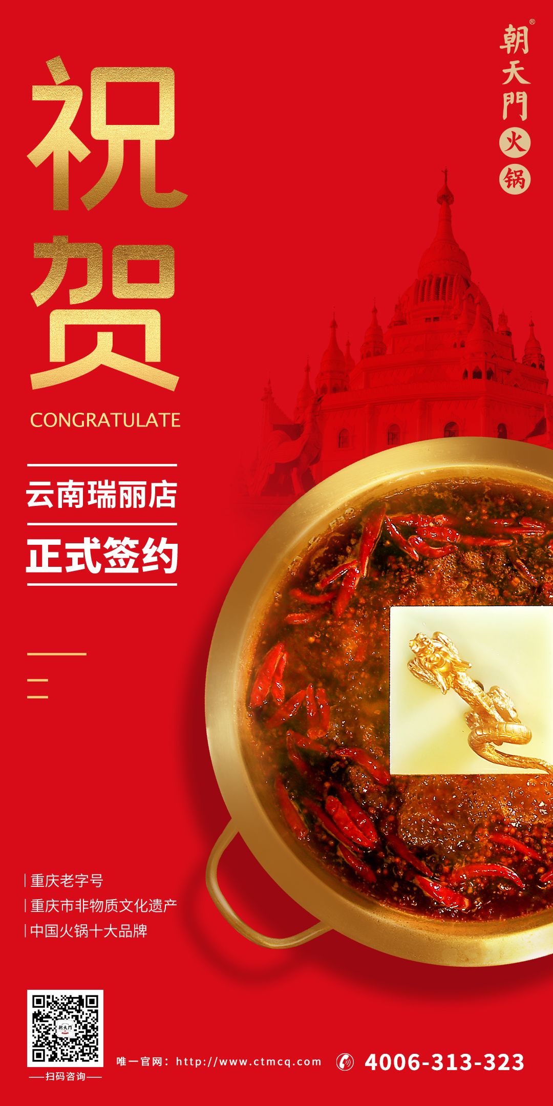 時間:2020-04-21 16:42熱烈祝賀云南白總再次與朝天門火鍋達成合作協(xié)議,喜開云南瑞麗二店!