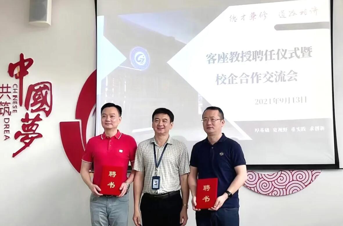 校企合作交流會(huì)上,王普董事長(左一)接受聘書續(xù)聘重慶人文科技學(xué)院客座教授。