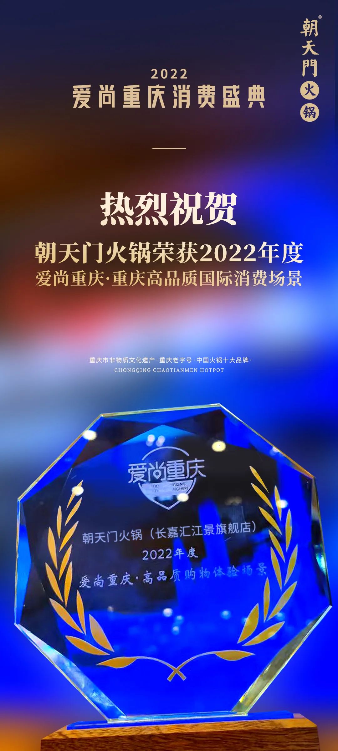喜報 | 恭喜朝天門火鍋獲得愛尚重慶·2022重慶高品質國際消費場景榮譽!