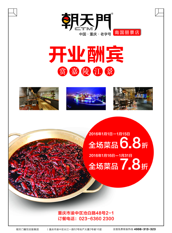 朝天門火鍋南國(guó)麗景店開(kāi)業(yè)邀您賞嘉陵江夜景