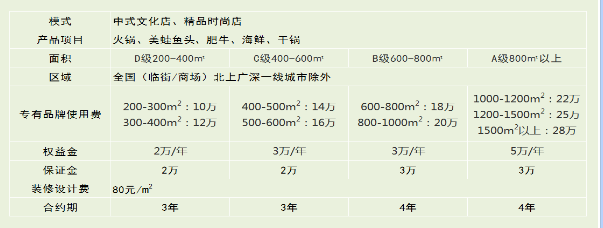 特色火鍋加盟單店費(fèi)用標(biāo)準(zhǔn)一: