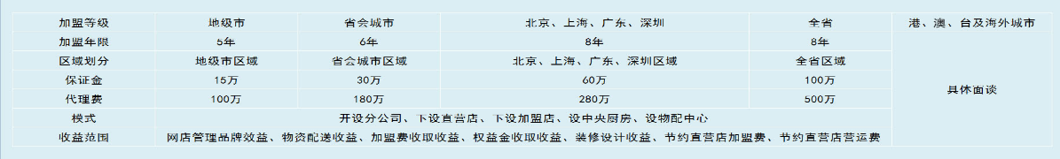 下面,見詳細(xì)的費(fèi)用標(biāo)準(zhǔn)分析,是針對(duì)區(qū)域或城市的等級(jí)以及店鋪面積的大小來(lái)制定,分為單店以及區(qū)域兩種標(biāo)準(zhǔn):
